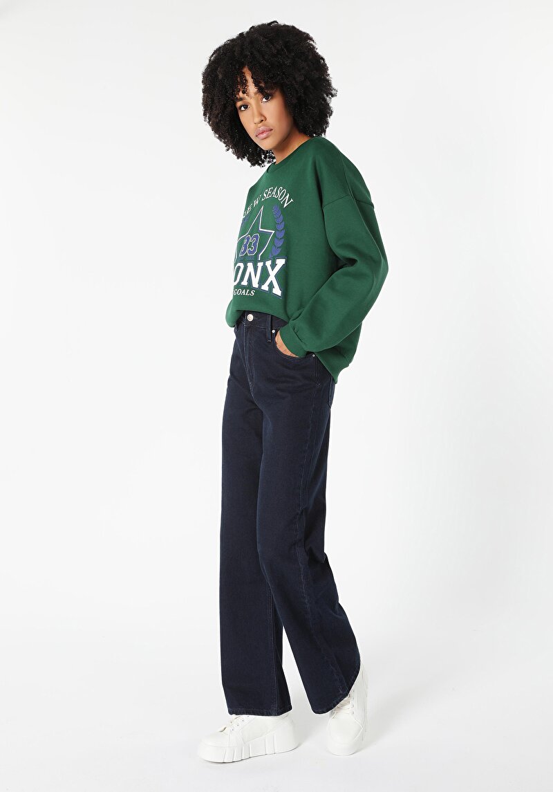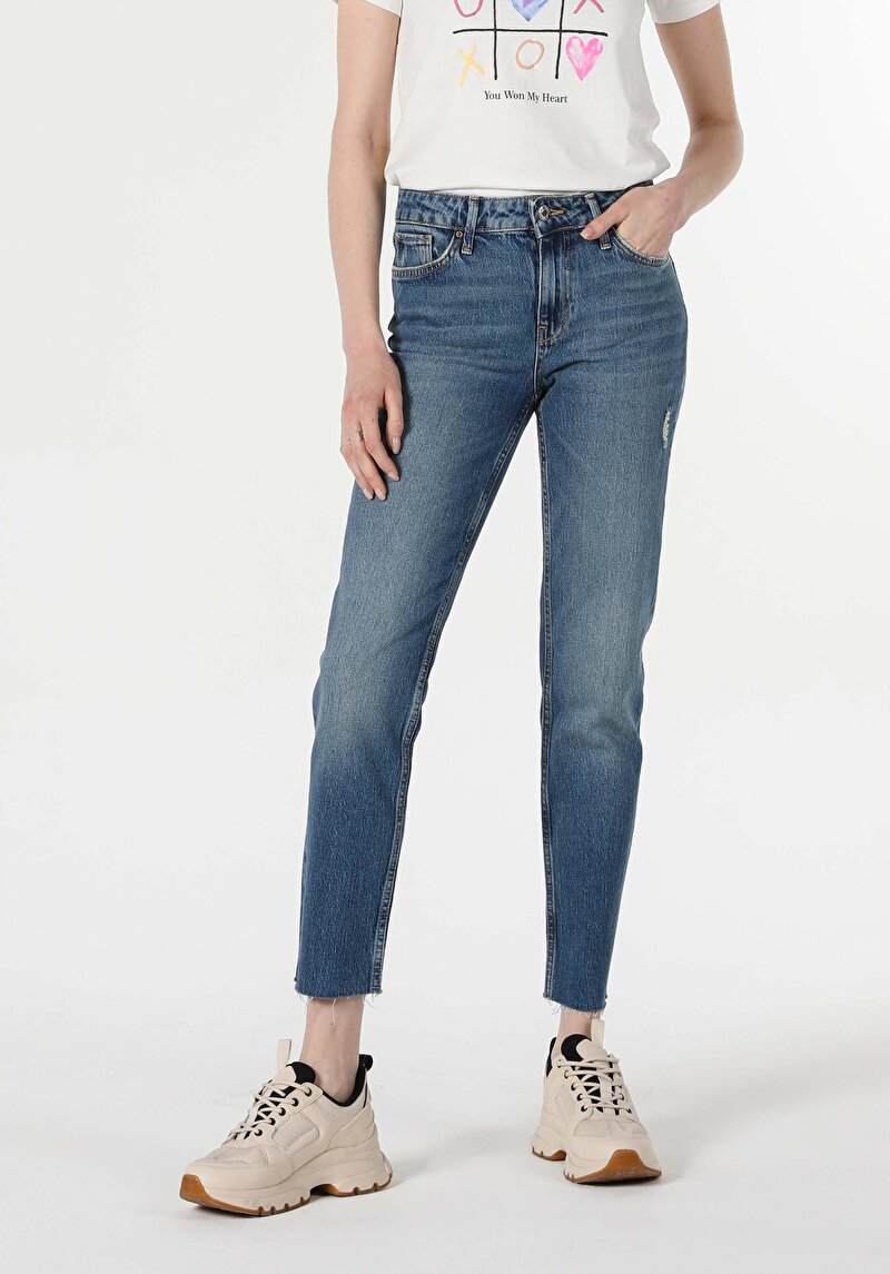 Женские джинсы цвета индиго прямого кроя со средней посадкой и приталенным силуэтом