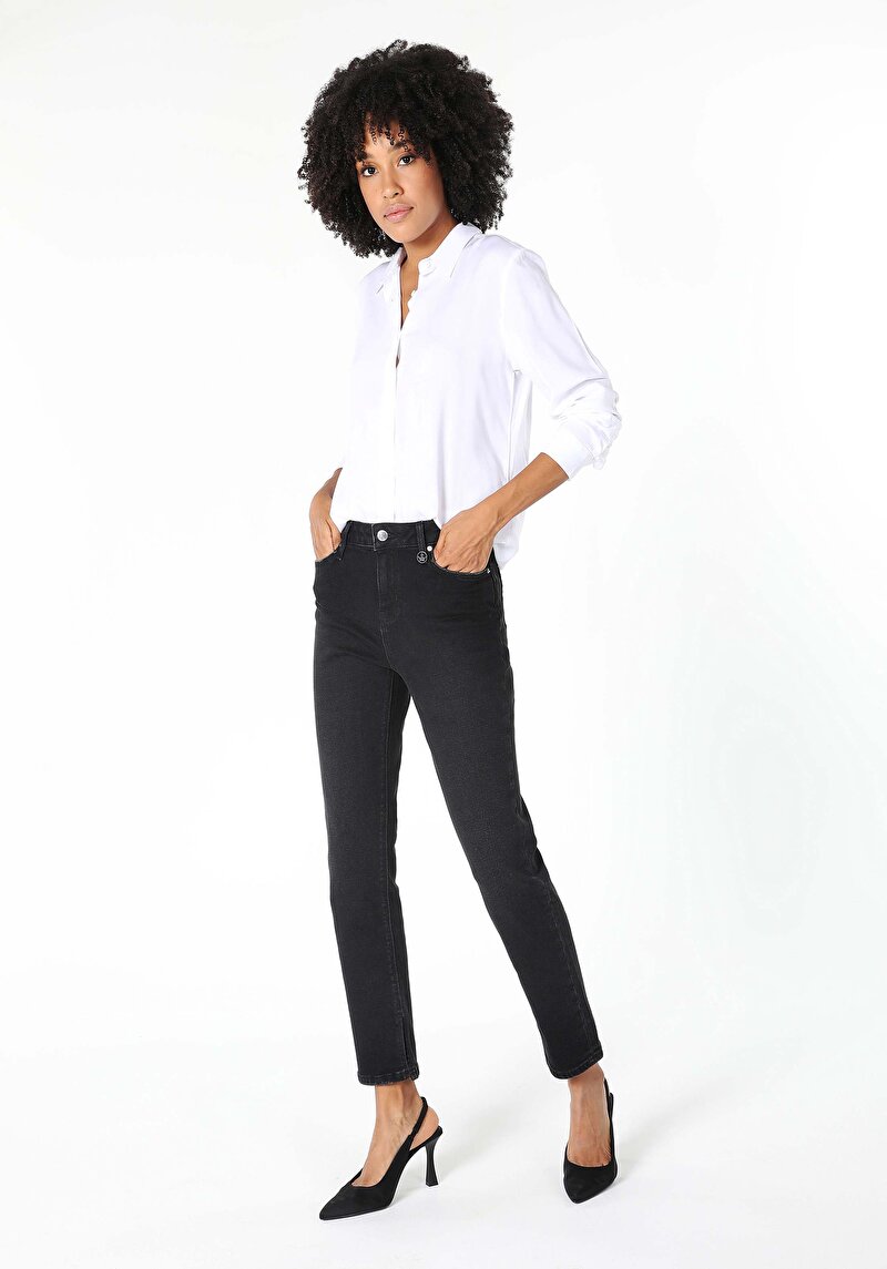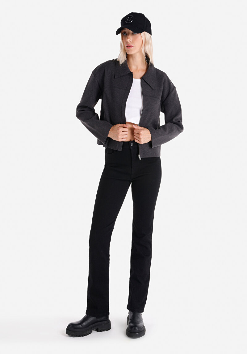 Женские чёрные джинсы прямого кроя со средней посадкой и приталенным силуэтом