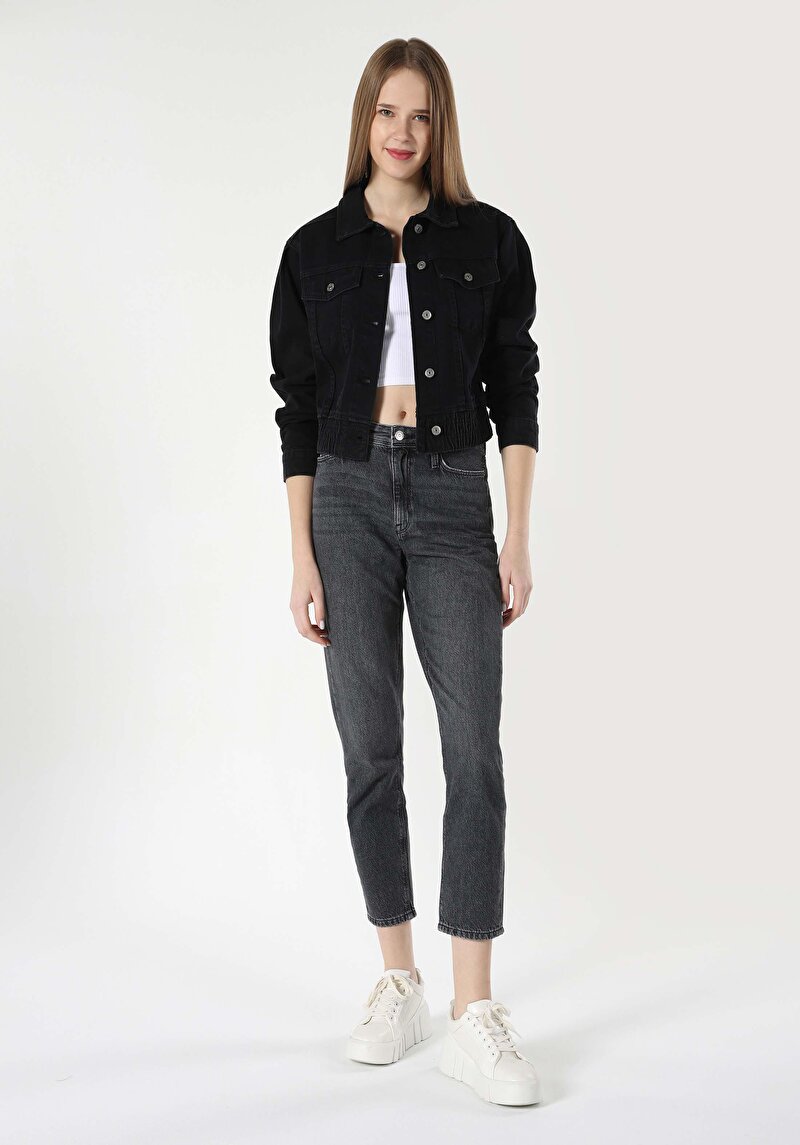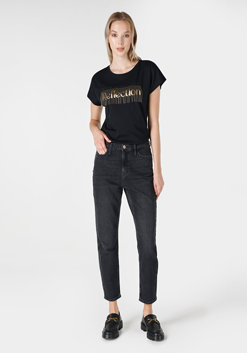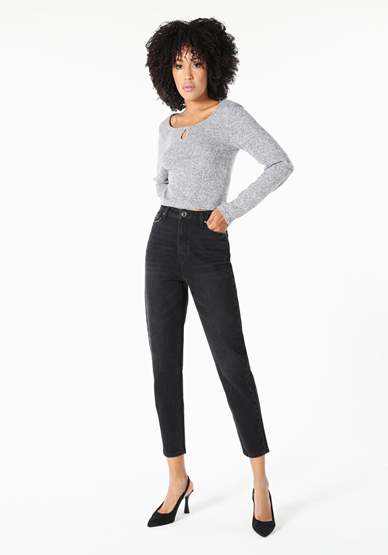 Женские чёрные джинсы mom fit с высокой талией и зауженными штанинами