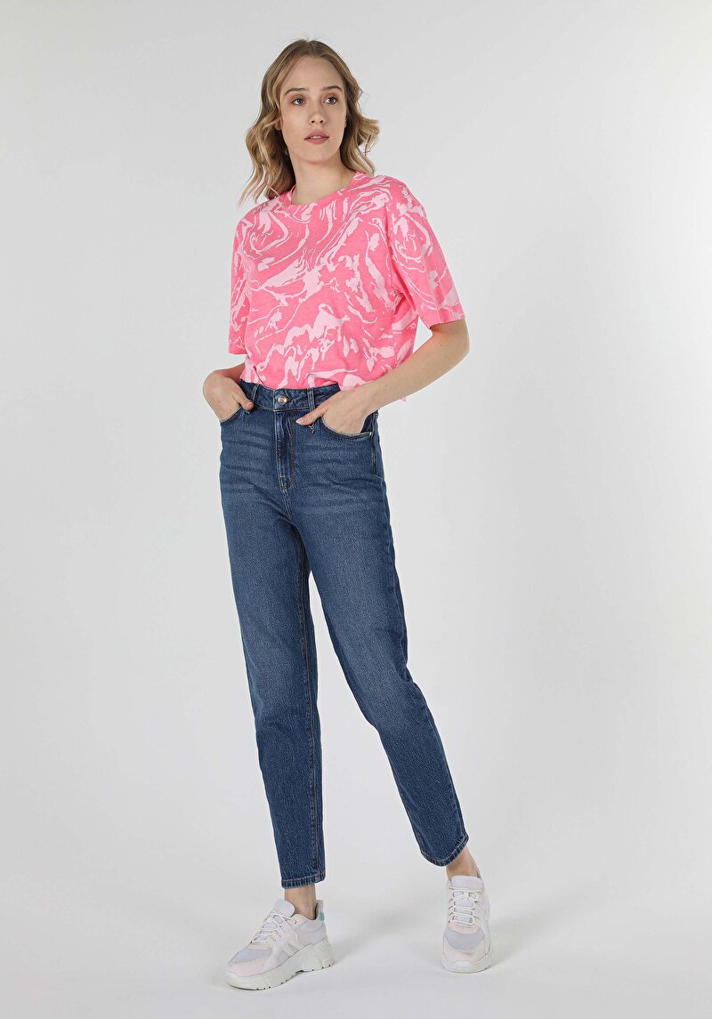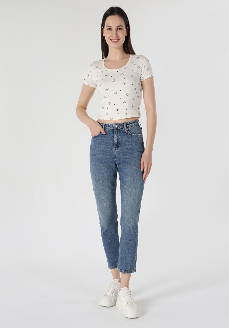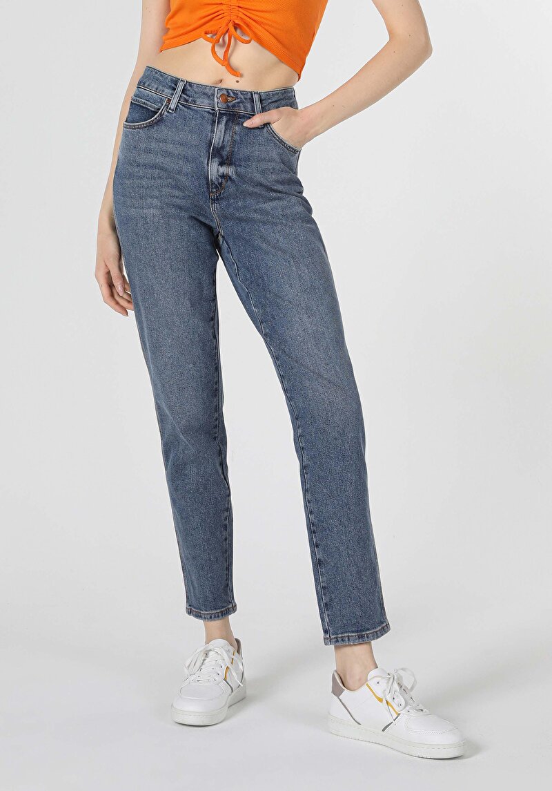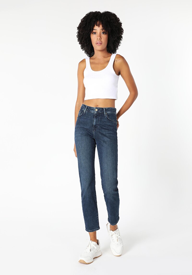 Женские джинсы цвета индиго mom fit с высокой посадкой и зауженными штанинами