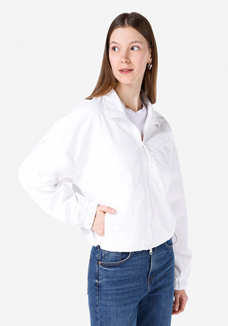 Женский белый водонепроницаемый плащ стандартного кроя на молнии с капюшоном и подкладкой