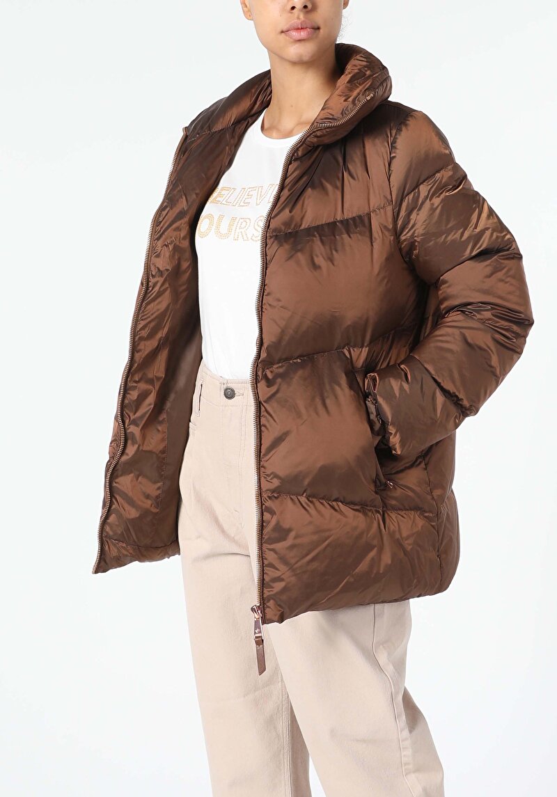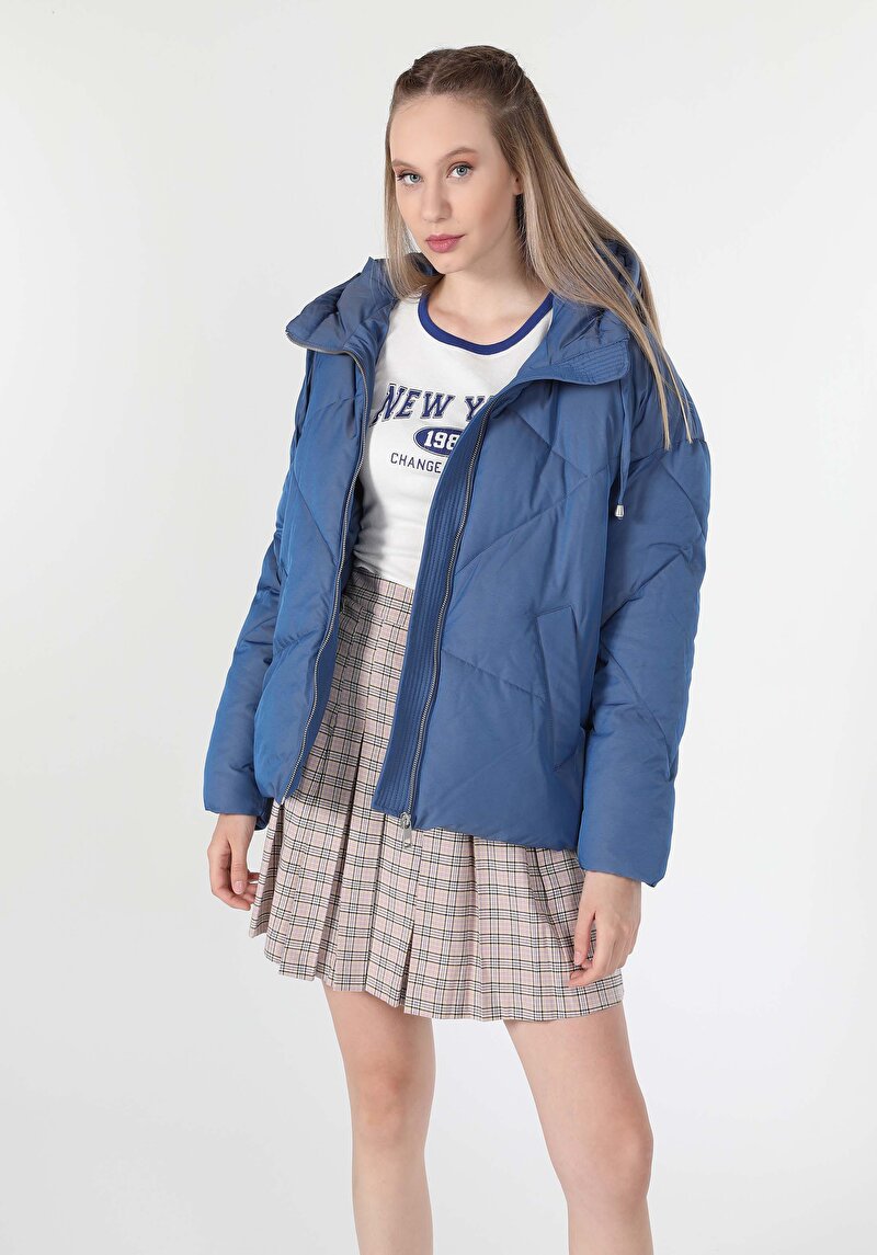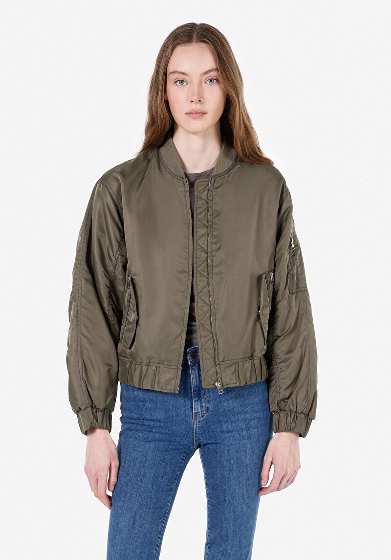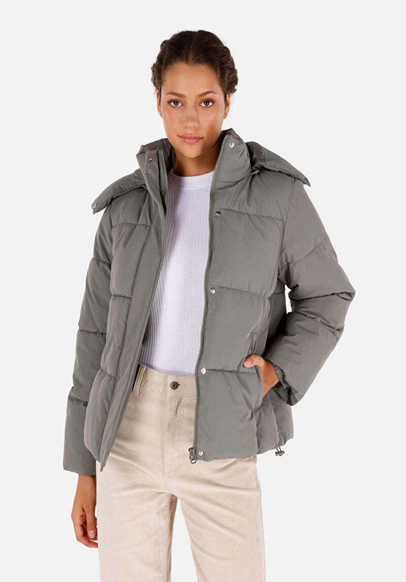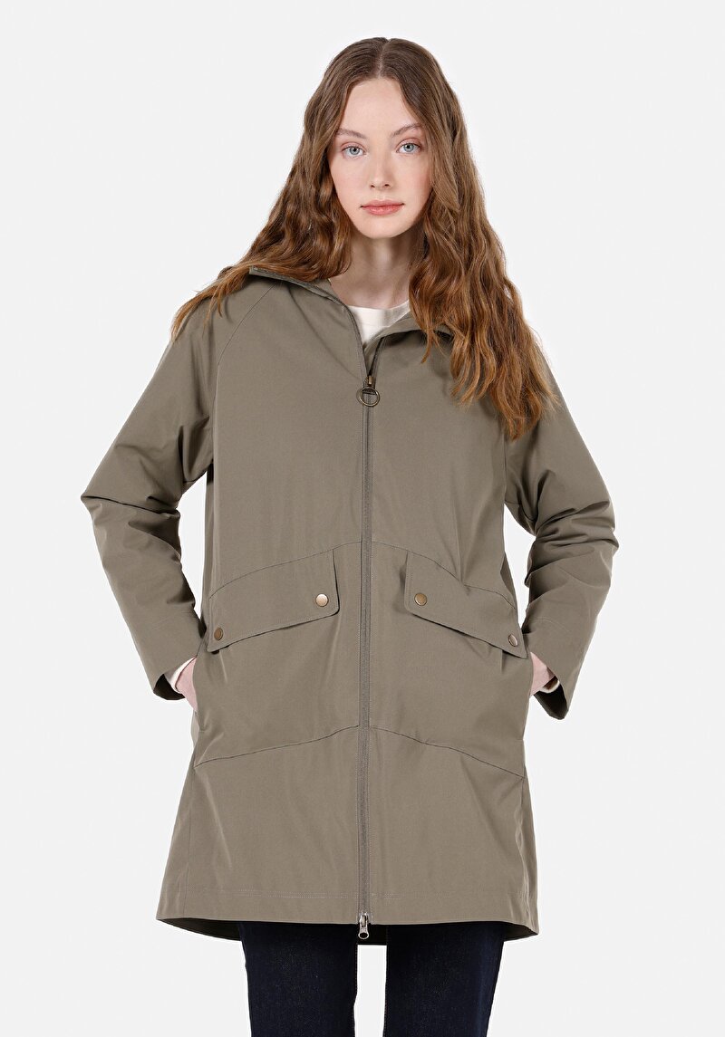 Женское зеленое пальто обычного кроя с капюшоном и застёжкой-молнией