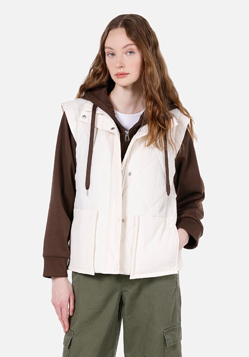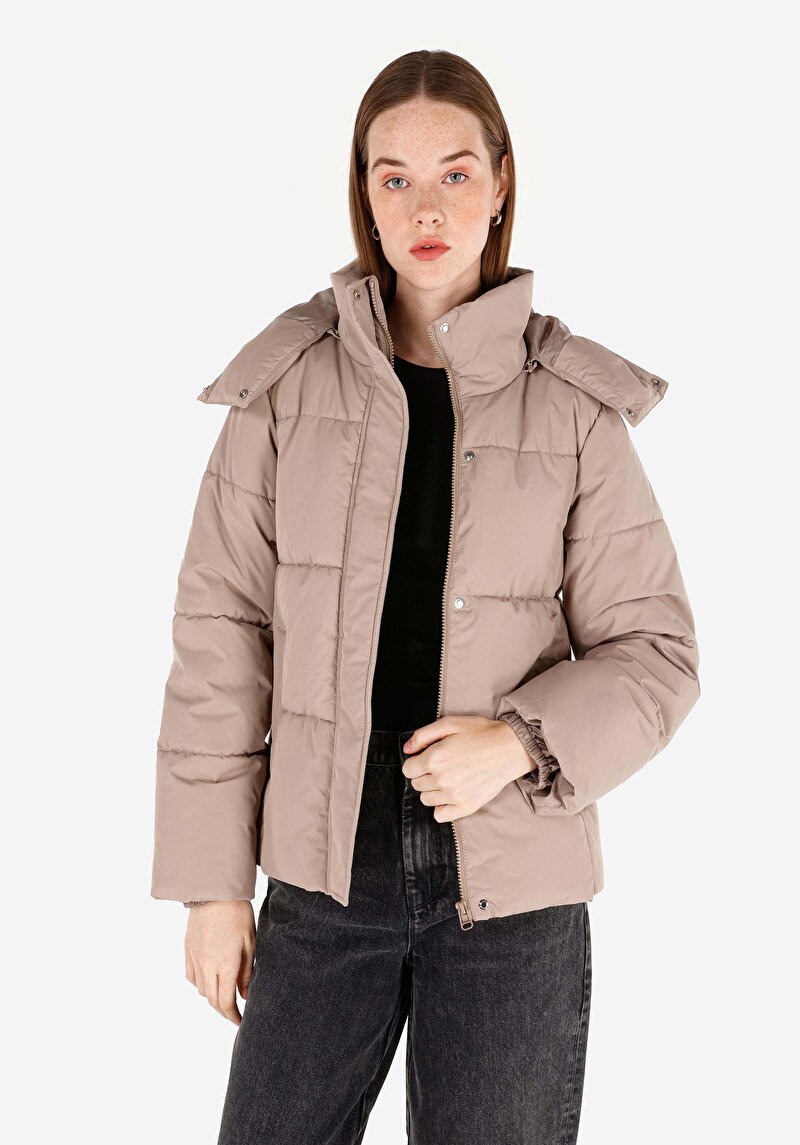 Женское бежевое пальто с капюшоном, стандартного кроя, на молнии, с подкладкой
