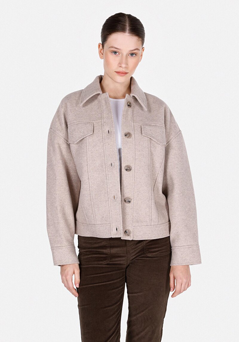 Женское белое пальто стандартного кроя, с v-образным вырезом