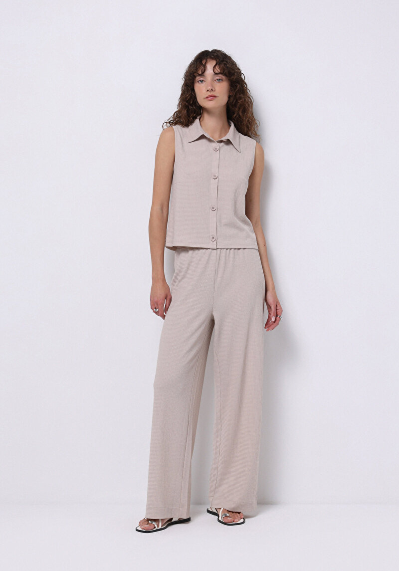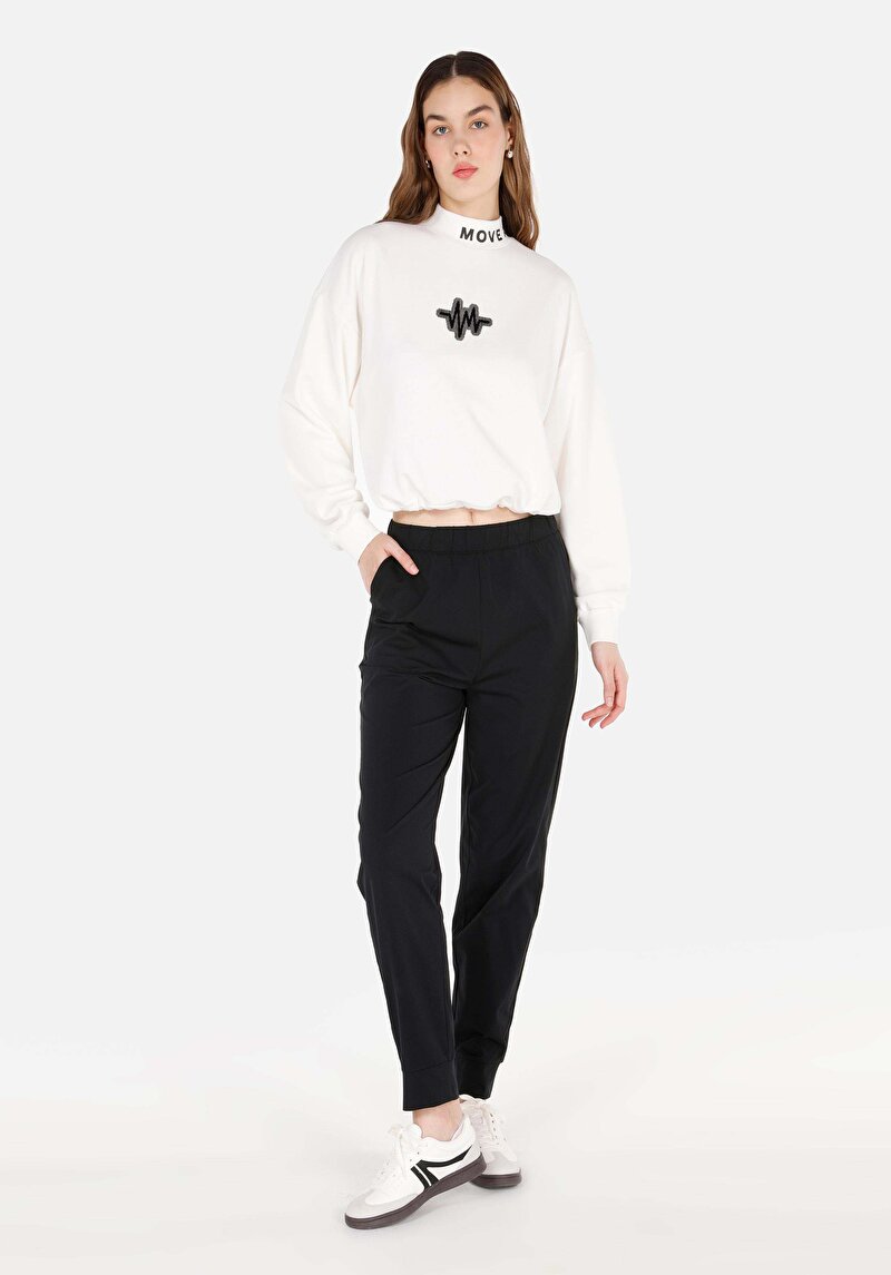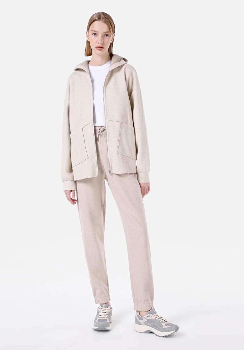 Женские спортивные брюки цвета экрю стандартного кроя с средним поясом и прямым силуэтом
