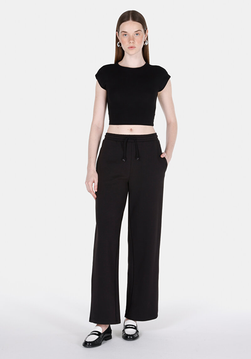 Женские черные спортивные брюки стандартного кроя, средней посадки