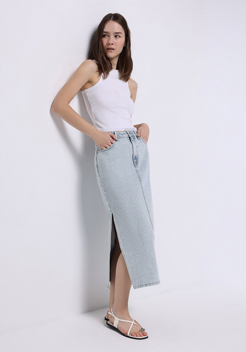 Женская юбка светло-голубого цвета приталенного кроя, на молнии