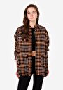 Показать информацию о Женская бежевая рубашка свободного кроя с воротником и длинными рукавами